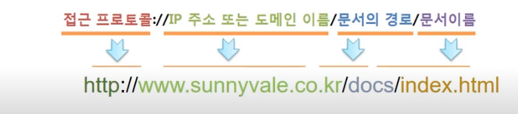 URL은 크게 3가지로 나뉘는데 프로토콜, IP주소 또는 도메인번호, 자원의 위치로 나뉜다.