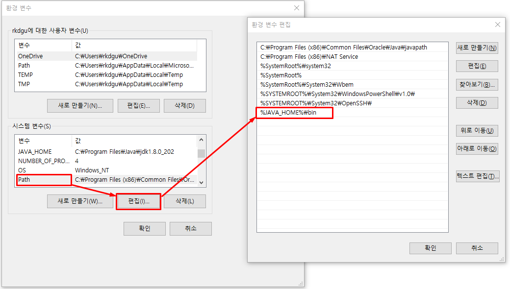 5) 시스템 변수 Path에 JDK / bin 디렉토리 경로 추가하기
