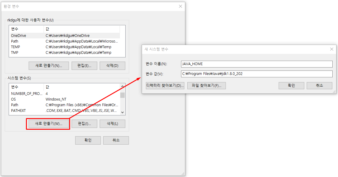 4) 시스템 변수 JAVA_HOME 만들기(변수 값은 jdk 홈)