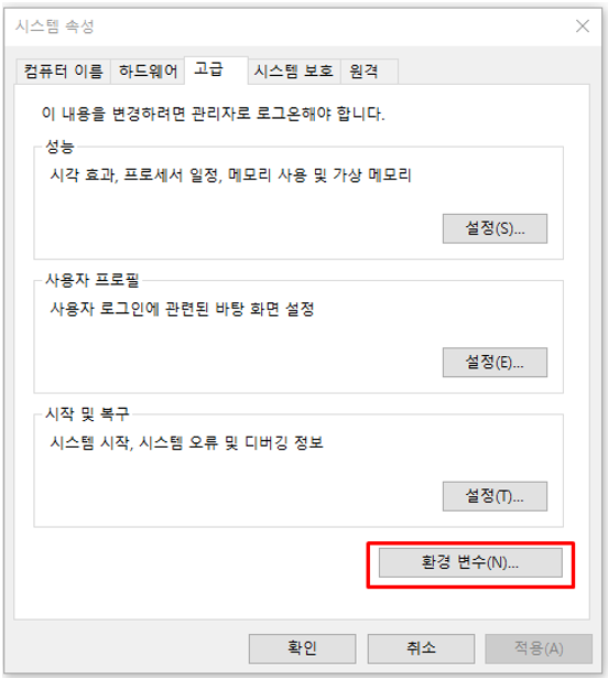 3) 환경 변수 클릭