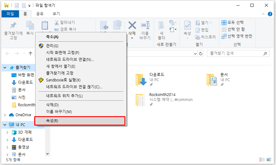 1) 내 컴퓨터 속성 이동
