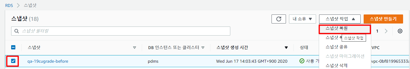 [RDS] 스냅샷(Snapshot)을 이용한 백업및 복구 방법.