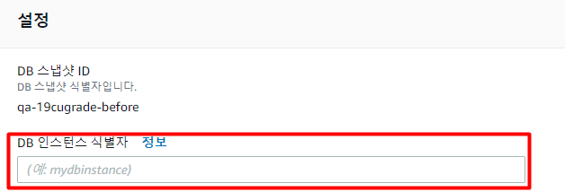 DB 인스턴스 클래스도 기존 정보와 다르기 때문에 확인 해줘야 한다.