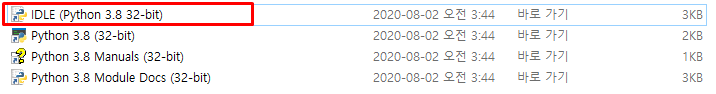 파일위치를 열면 "IDLE" 파일이 있는데 실행하면 Shell 창이 뜬다.