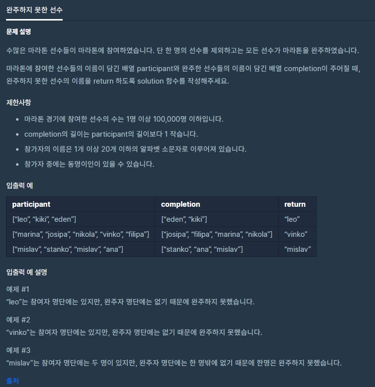 https://programmers.co.kr/learn/courses/30/lessons/42576