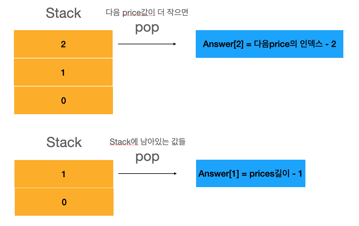 스택으로 푸는 방법은 처음 price를 stack에 쌓고 다음 price가 더 크면 스택에 쌓고 작으면 pop을 한다.