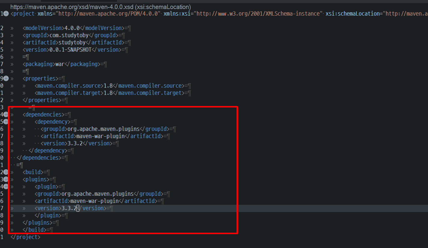 위 처럼 pom.xml에 코드 추가해주면 해결된다