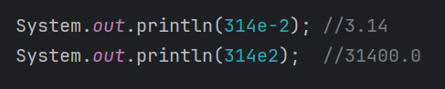 알파벳 e또는 E가 포함되어 있는 숫자 리터럴은 지수가 가수로 표현된 소수점이 있는 10진수 실수로 인식한다.