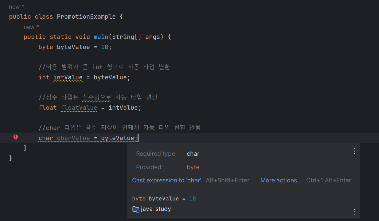 [Java] 변수의 자동타입 변환과 강제타입 변화