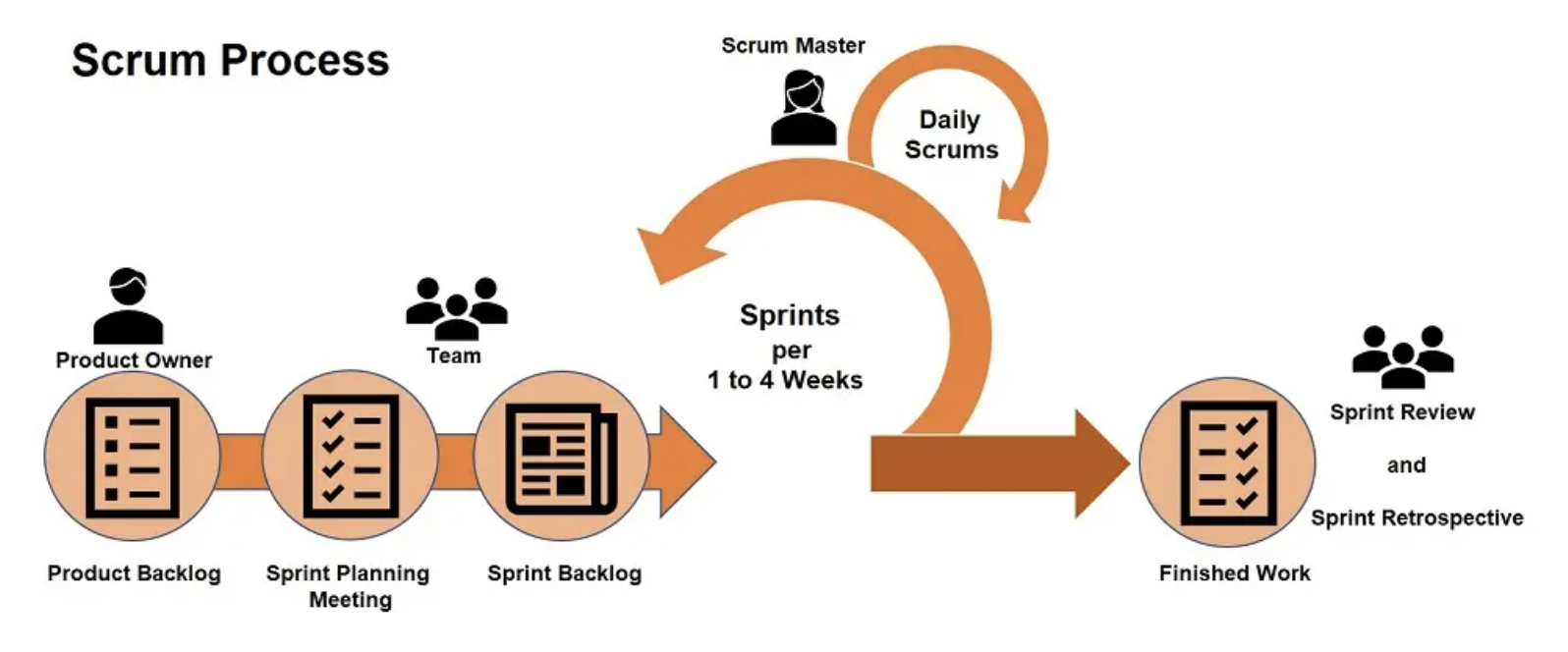애자일 관리 프레임워크를 Scrum 이라고 하는데 Scrum 프로세스는 아래와 같다.