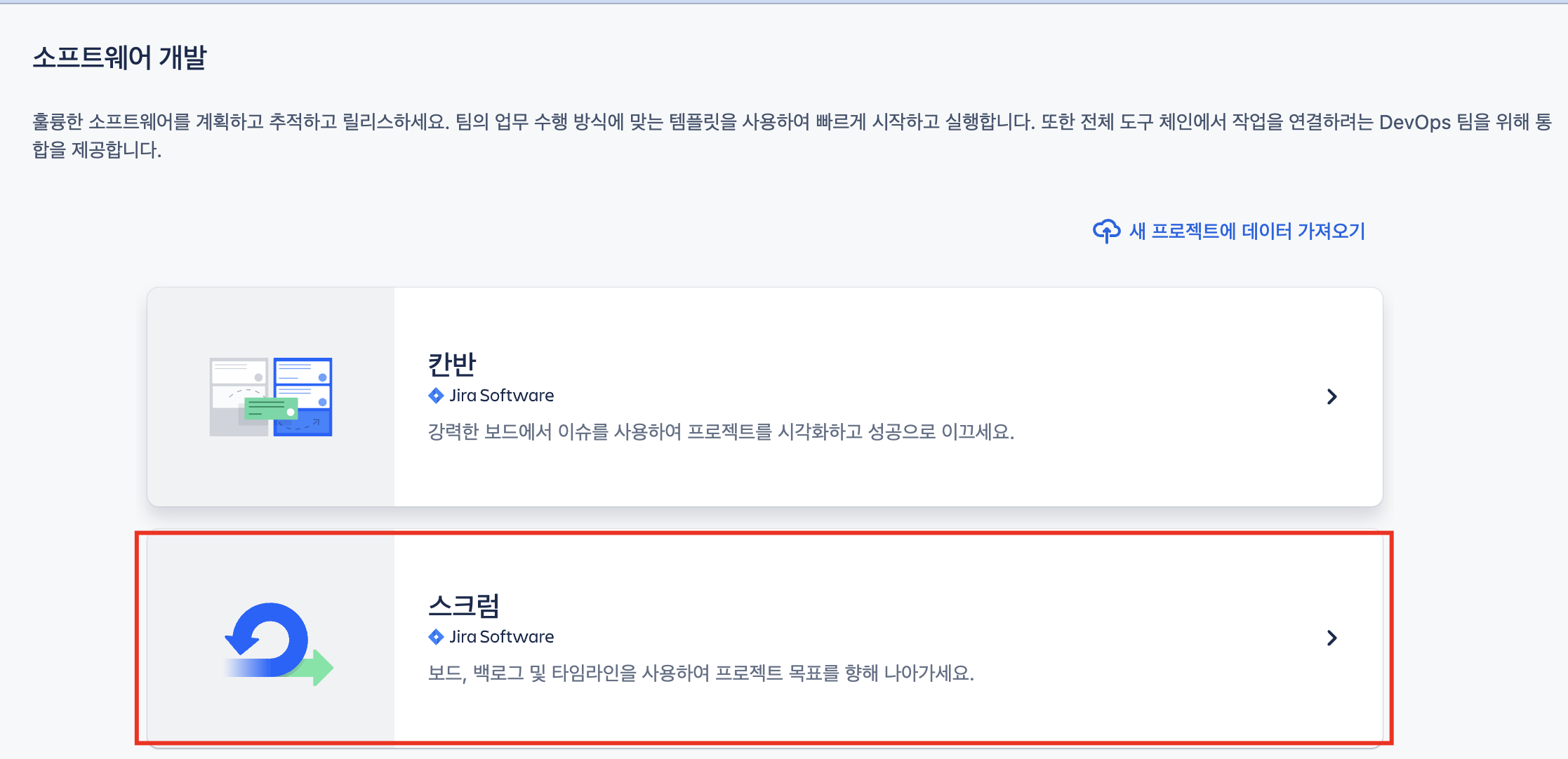 Sprint를 작성하고 Jira를 사용하여 스크림 템플릿으로 프로젝트를 만들었다.