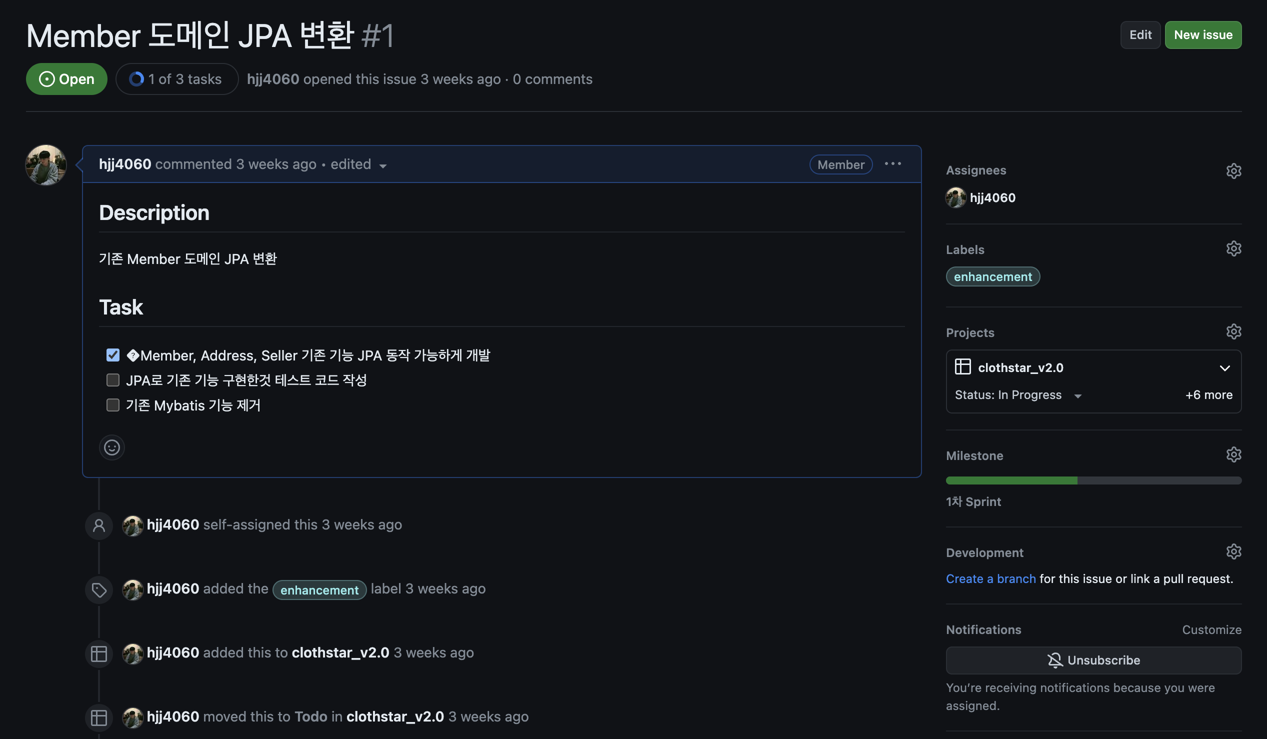 1차 팀프로젝트에서는 문서관리를 Jira, Github, Notion, Google Docs 4개 툴에서 관리하여 스프린트를 잘 지키지 못하여서 이번에는 Github 하나의 툴에서 관리하도록 하였다.