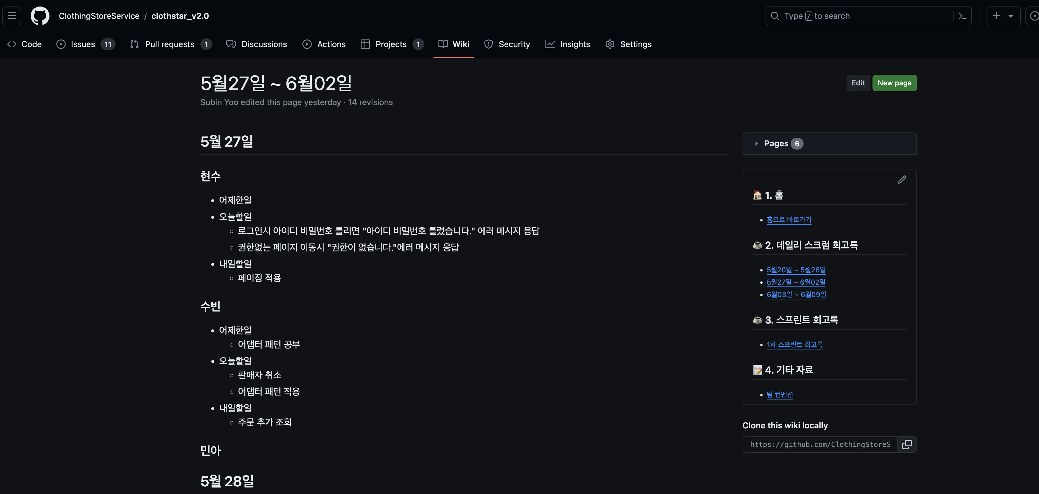 마지막으로 데일리 스크럼은 Wiki를 이용하였다.