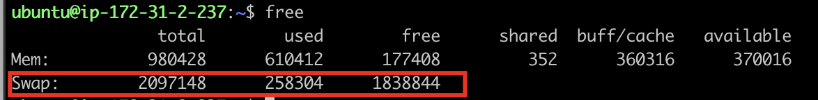 그래도 t2.small로 업그레이드 하기에는 비용때문에 참 애매했는데 서칭해서 swap 메모리로 해결했다는것을 보았다.