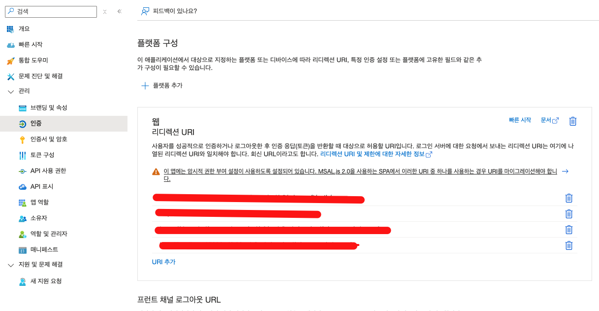 그리고 관리>인증에서 웹 리디렉션 URI를 기입하면된다.