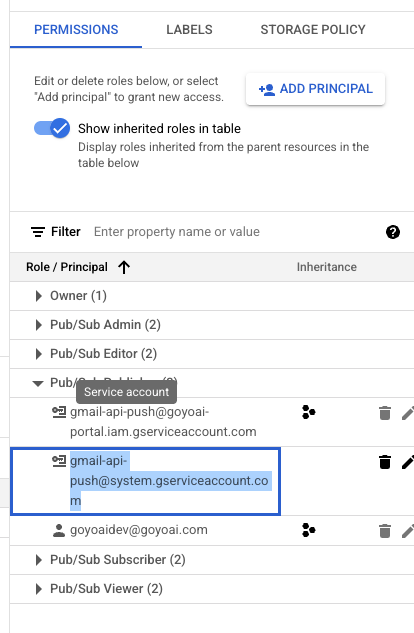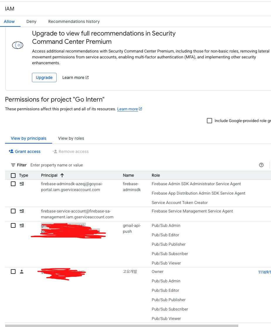 IAM 에서 계정을 추가후에 위에 ADD Principal 에서 넣어주면 된다.